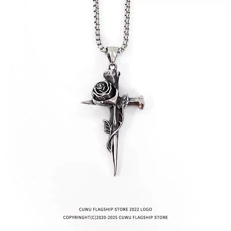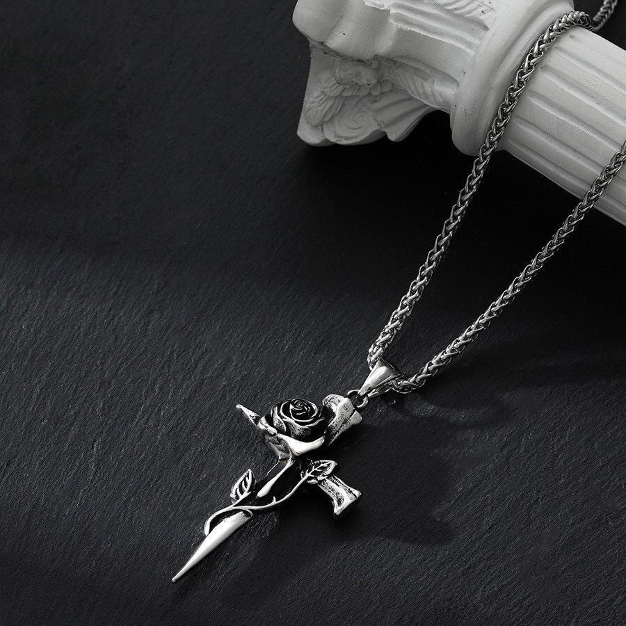 Gothic Design: Features a rose cross pendant with edgy, alternative aesthetic appeal
